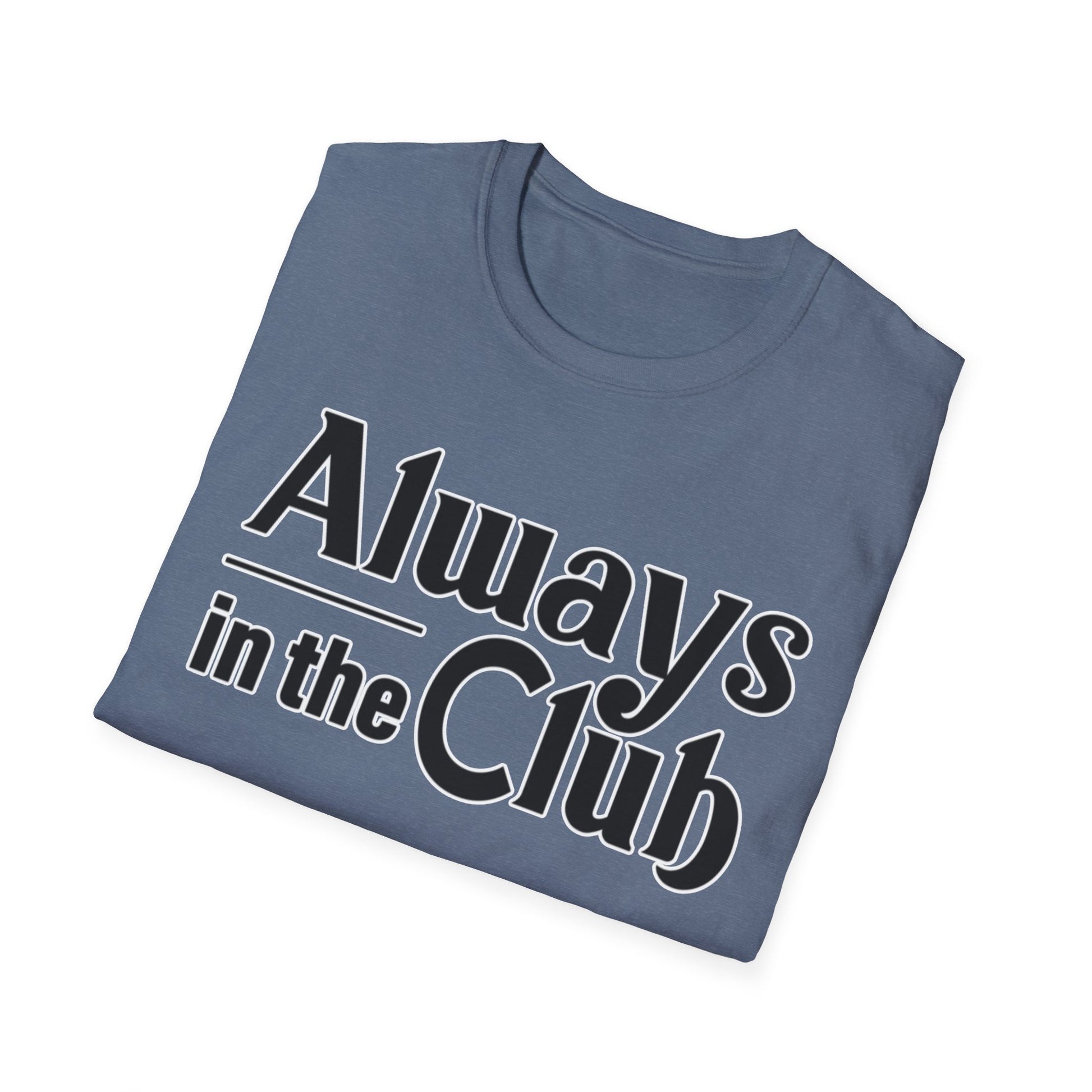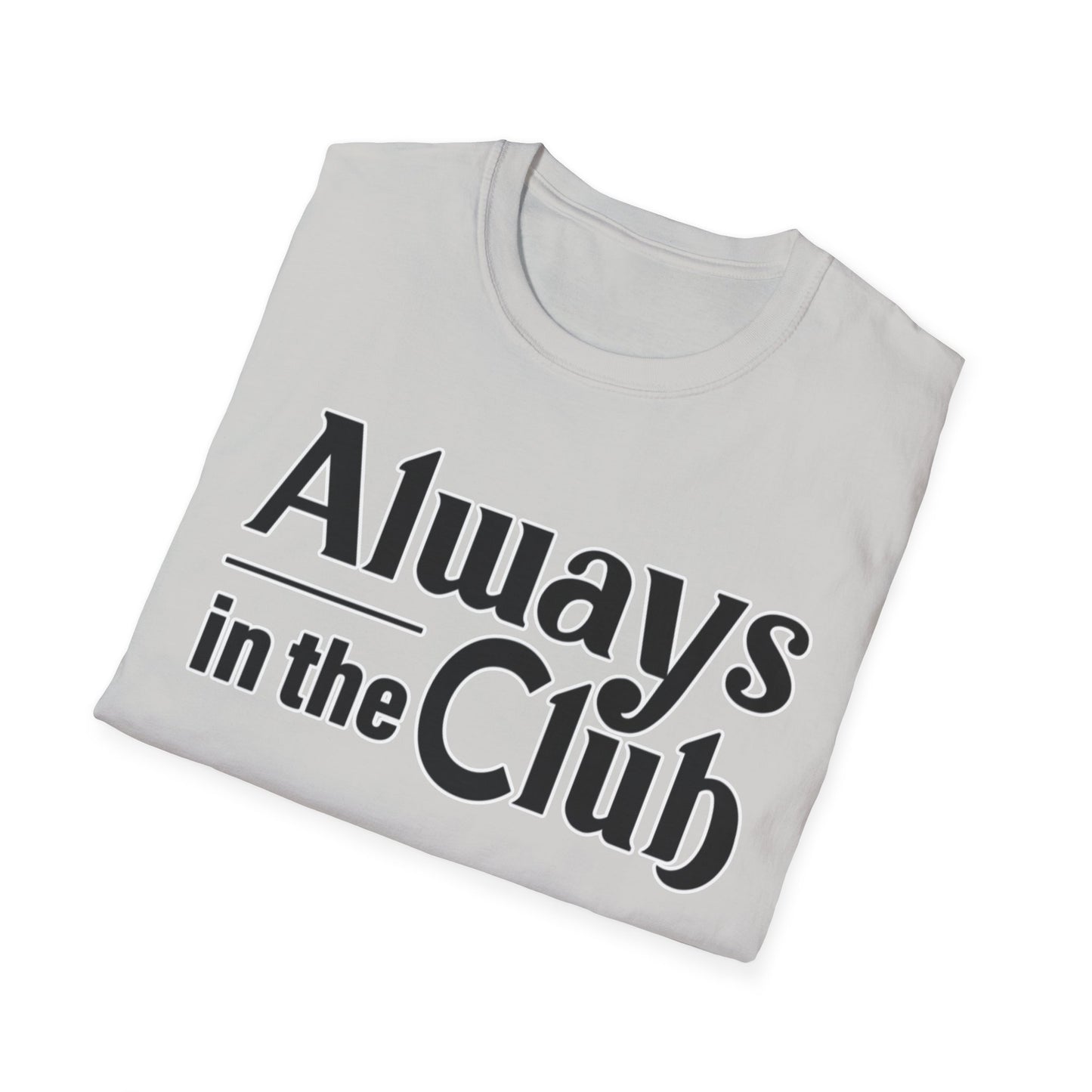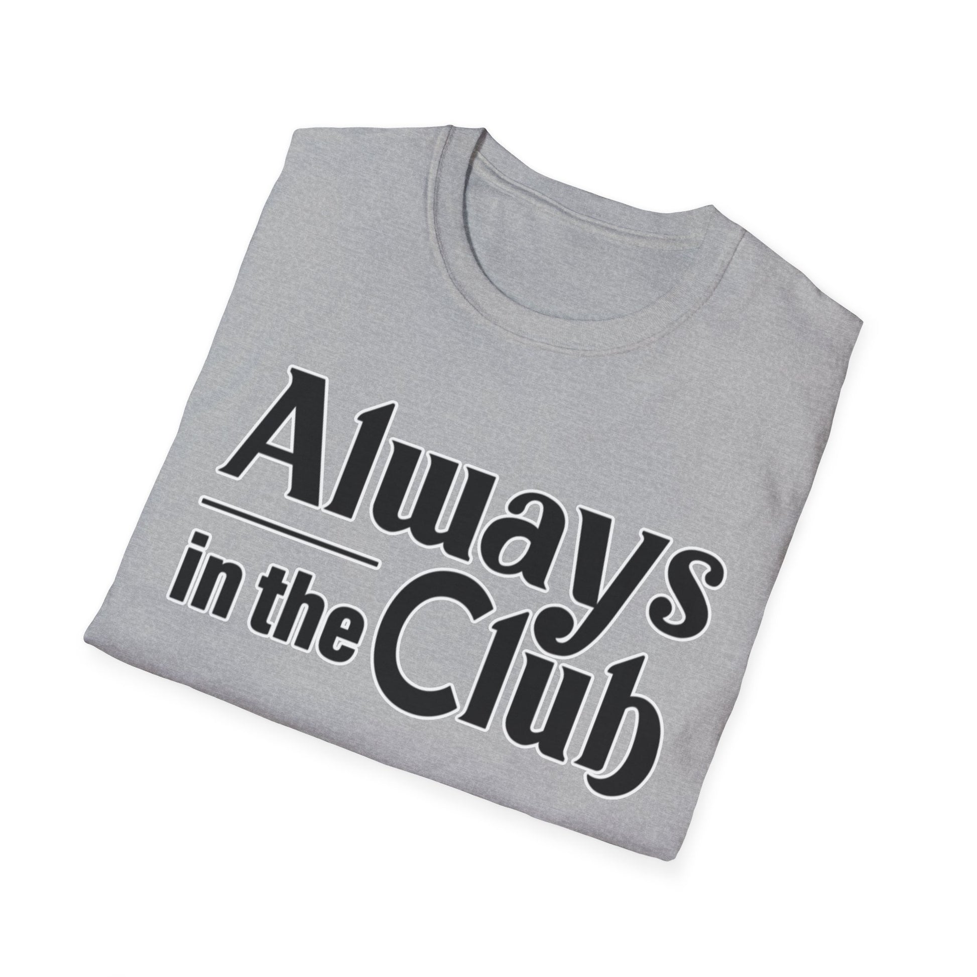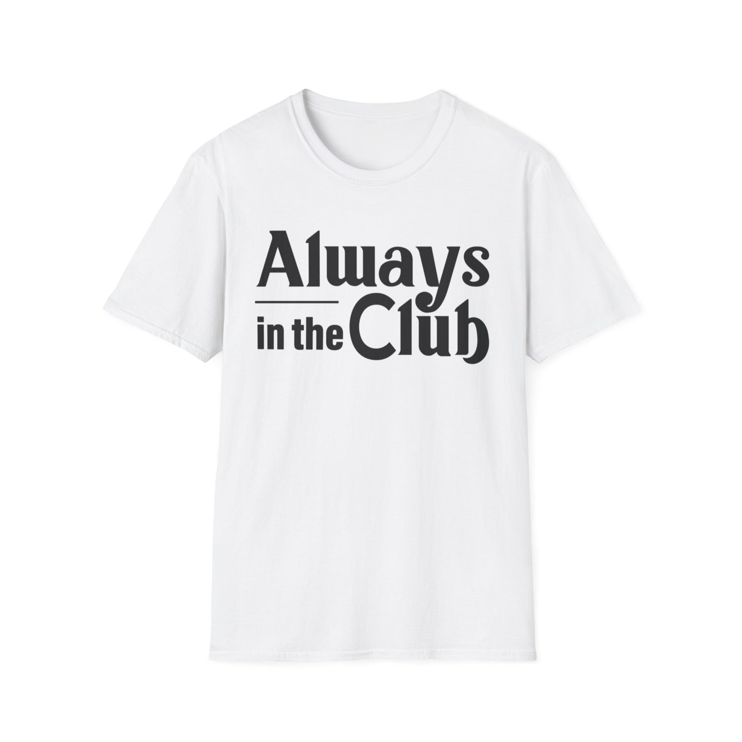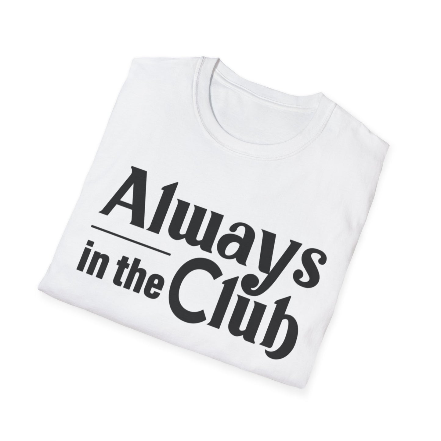 Show us you're Always In The Club! Introducing a versatile unisex softstyle t-shirt that combines comfort and style for every occasion. This shirt is perfect for casual outings, hangouts with friends, or even relaxed work environments. Its lightweight fabric and classic fit create a feeling of ease and freedom, allowing you to express your personality effortlessly. It's ideal for anyone looking to add a touch of casual flair to their wardrobe, making it significant for those who appreciate stylish comfort. Perfect for birthdays, holidays, or simply treating yourself or a loved one to an exquisite piece of clothing.