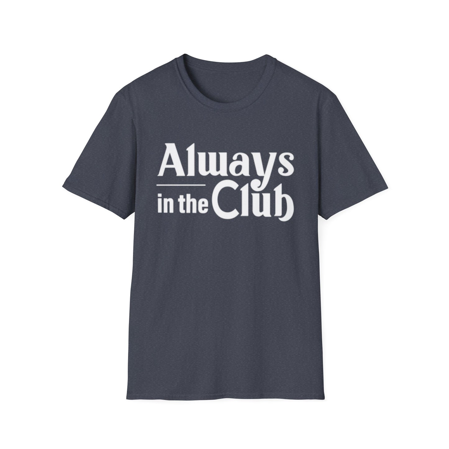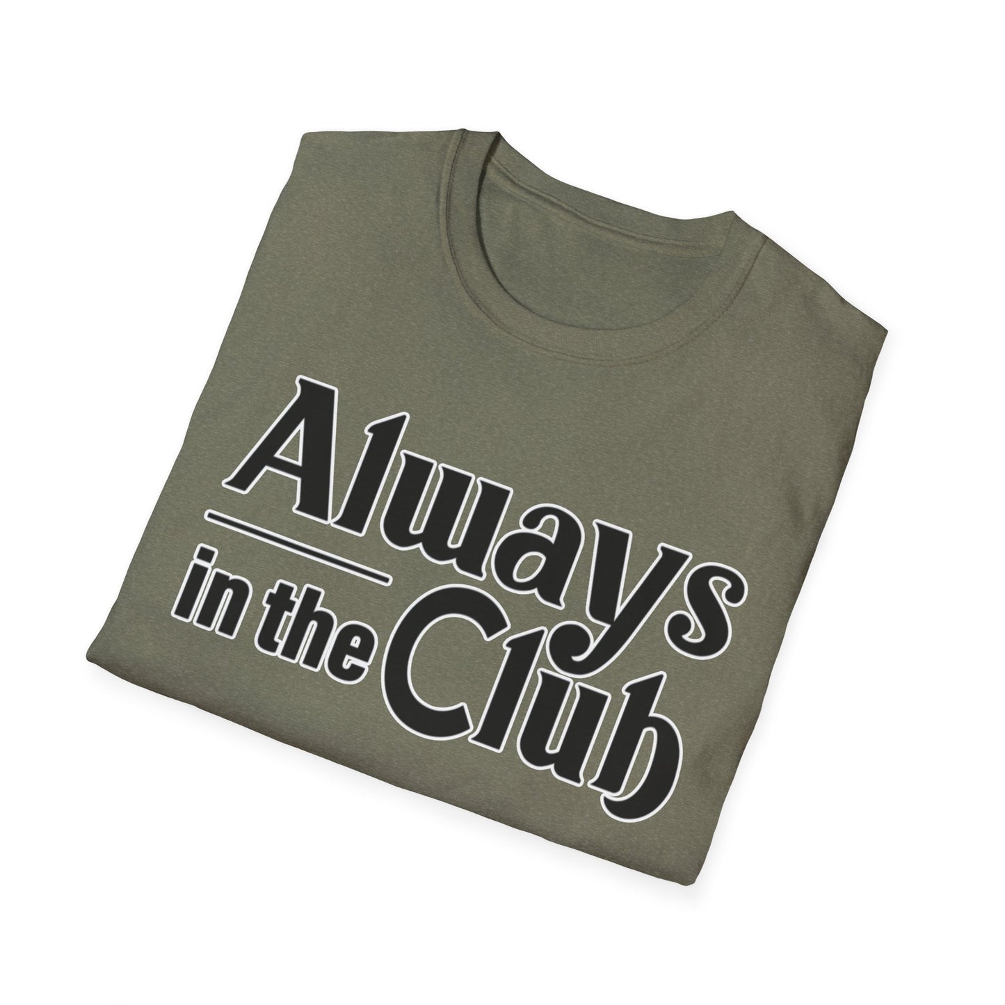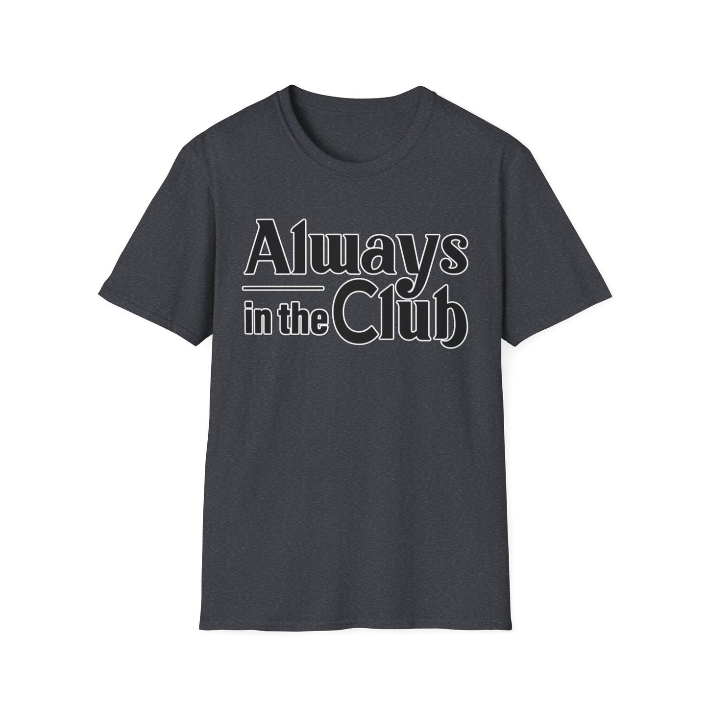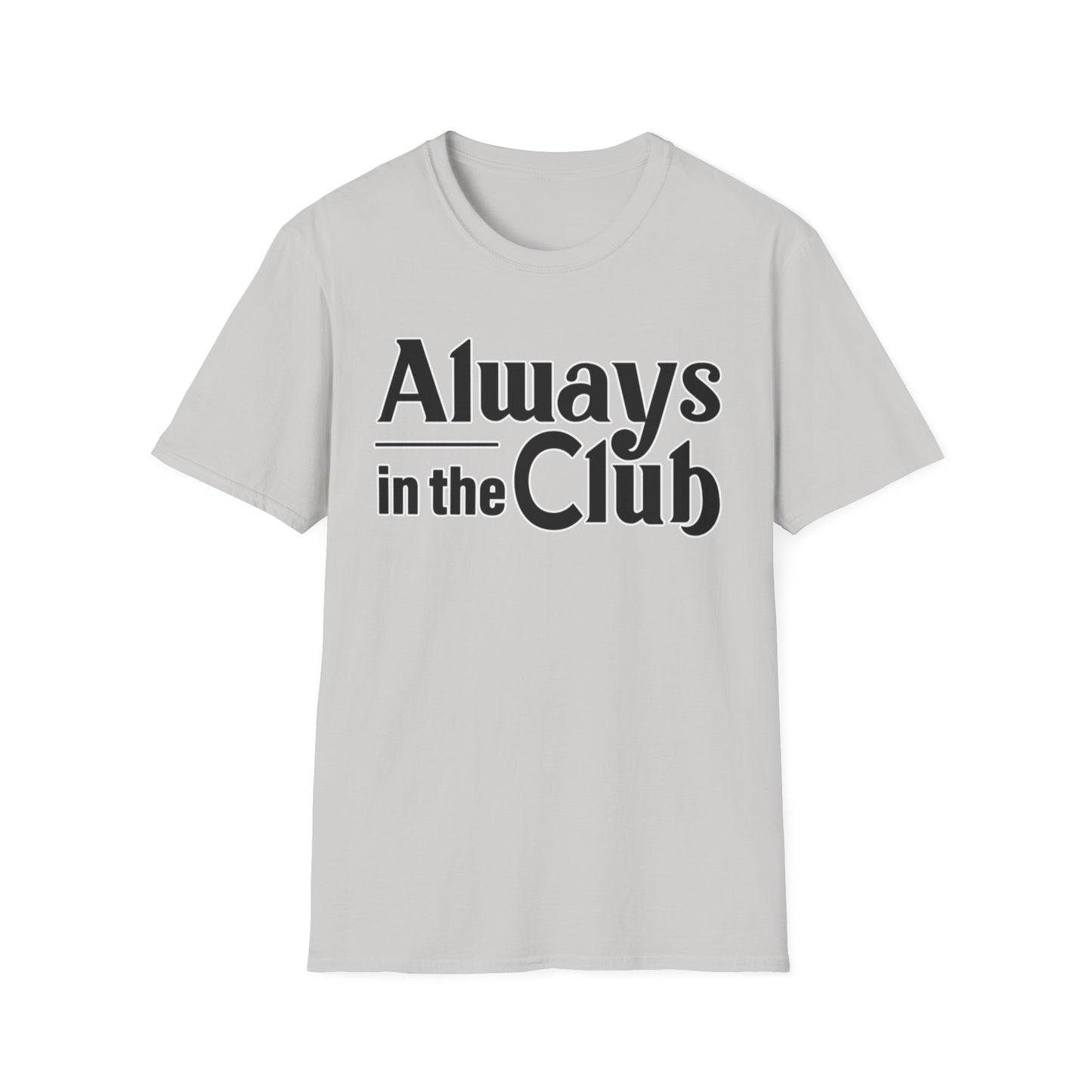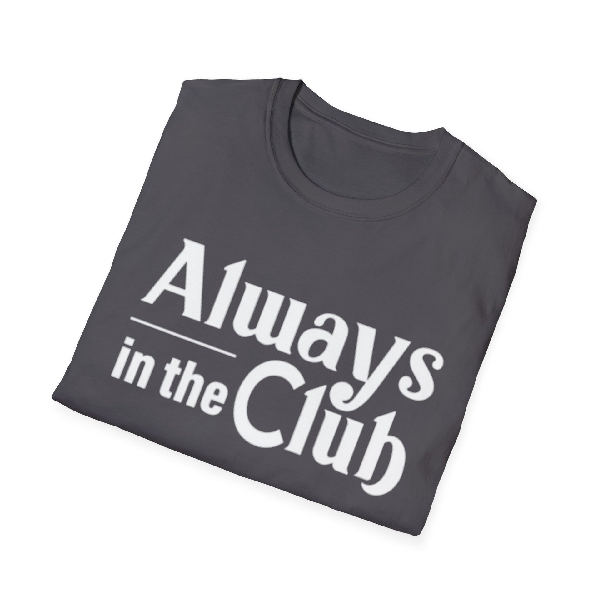 Show us you're Always In The Club! Introducing a versatile unisex softstyle t-shirt that combines comfort and style for every occasion. This shirt is perfect for casual outings, hangouts with friends, or even relaxed work environments. Its lightweight fabric and classic fit create a feeling of ease and freedom, allowing you to express your personality effortlessly. It's ideal for anyone looking to add a touch of casual flair to their wardrobe, making it significant for those who appreciate stylish comfort. Perfect for birthdays, holidays, or simply treating yourself or a loved one to an exquisite piece of clothing.